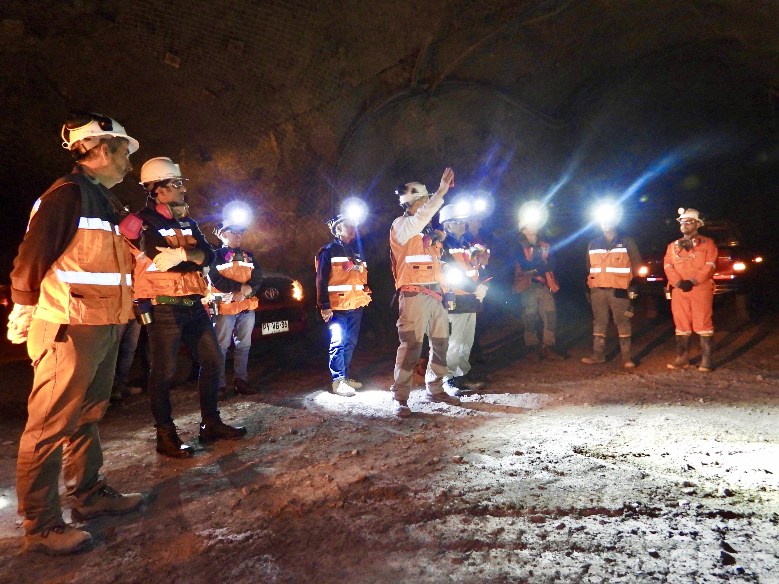 Tras las palabras iniciales de bienvenida del Gerente General Robert Mayne Nicholls, los inversionistas recibieron una inducción de seguridad y de los protocolos de protección de la zona arqueológica. Posteriormente tuvieron la oportunidad de descender hasta el nivel 620 de la mina Salamanqueja, donde nuestro equipo de geólogos e ingenieros explicó las características de la veta y del método de explotación.