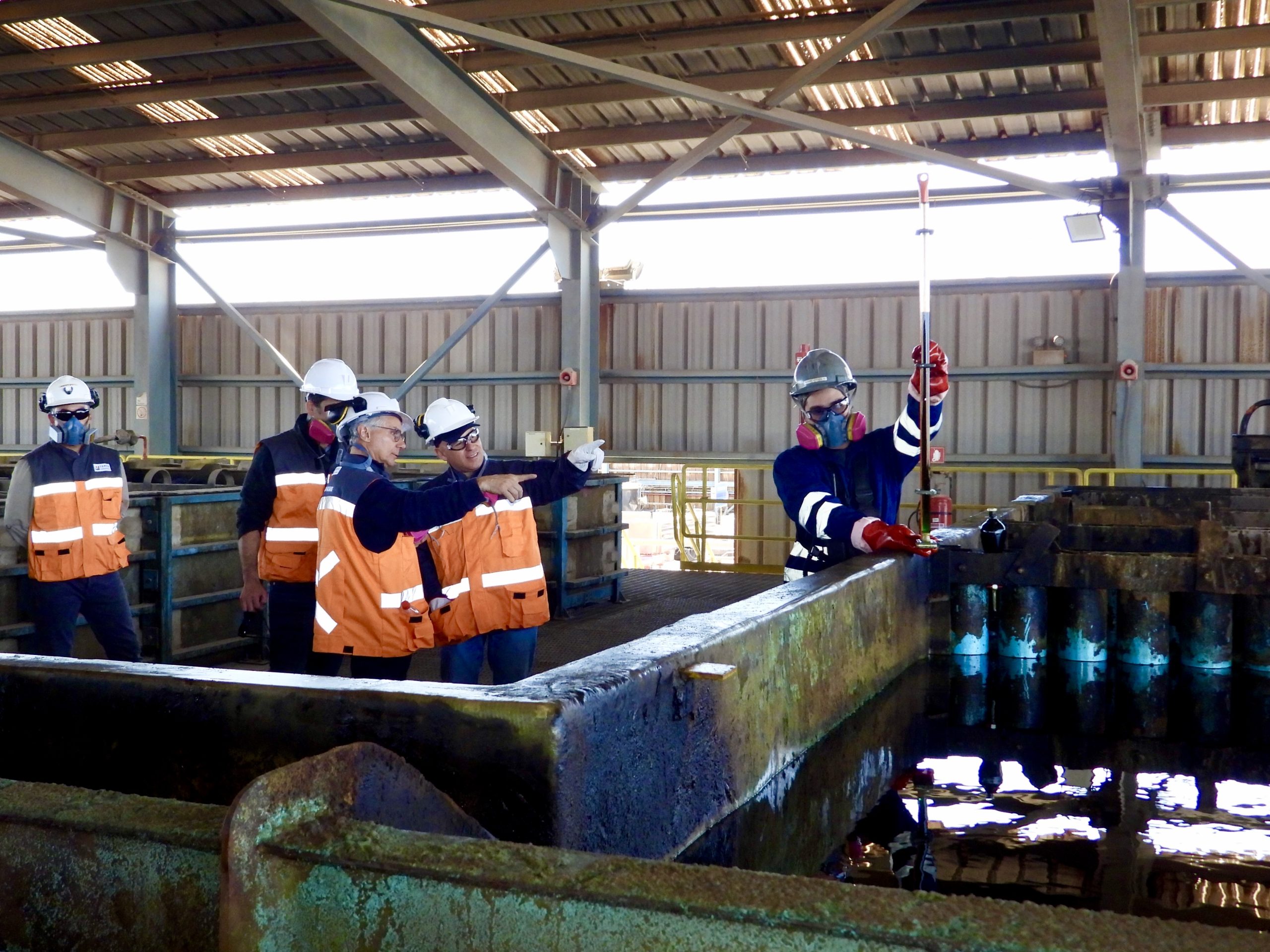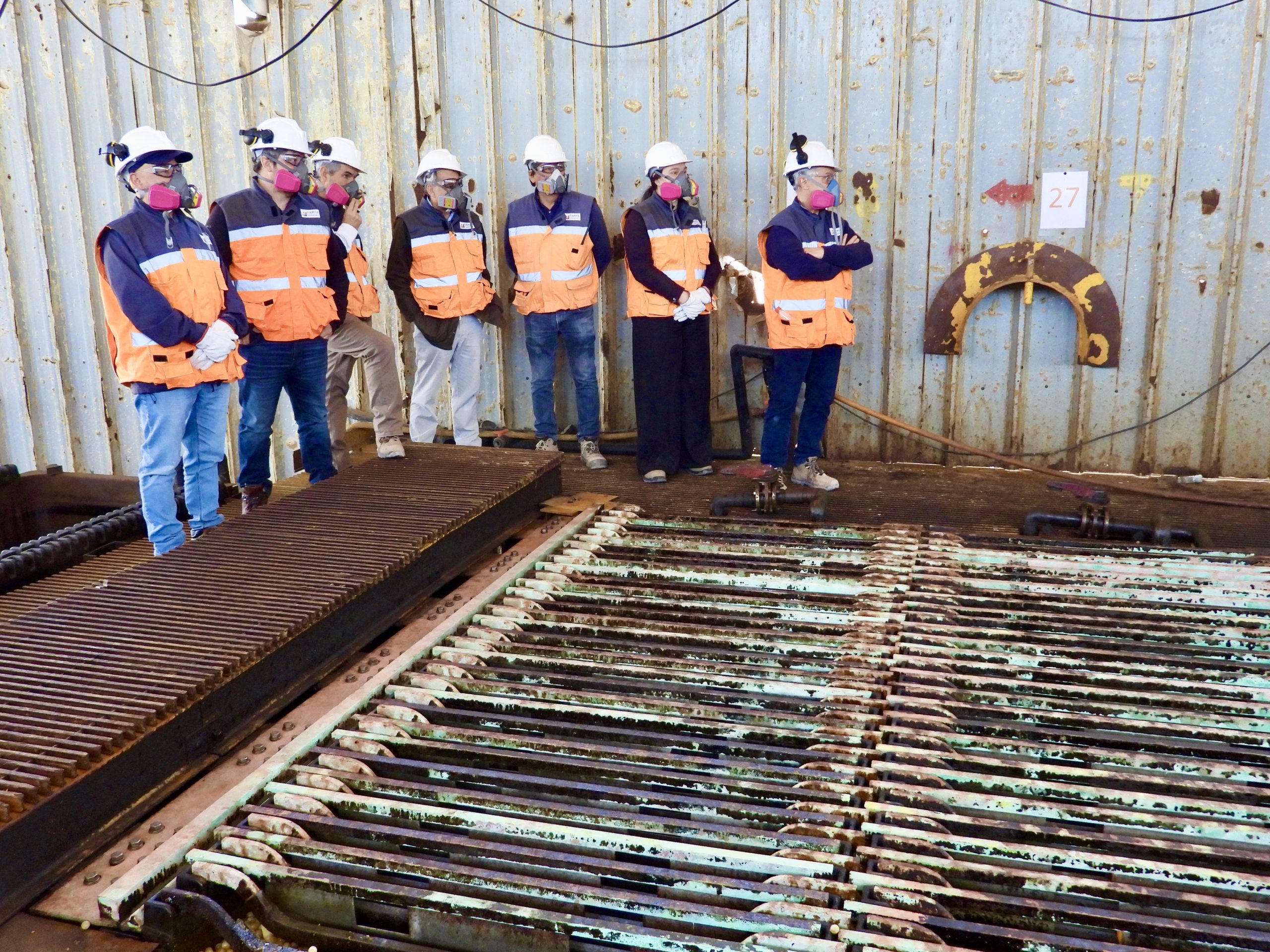 De regreso en la superficie, pudieron presenciar las pilas de lixiviación de nuestra operación y la planta de chancado, para después acceder a la planta de extracción por solvente y electrowinning. Acá, se explicaron los procesos técnicos que nos permiten producir cátodos con 99,99% de cobre, cerrando una exitosa visita.